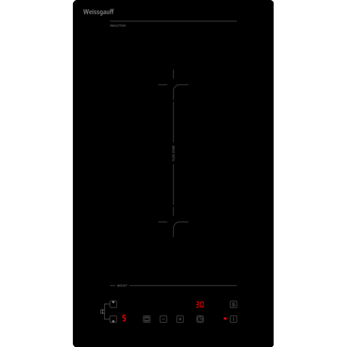 Индукционная панель Weissgauff в дизайне "Домино" оснащённая технологией непрерывного нагрева и свободной зоной Flex Zone - это сочетание функциональности и технологичности при минимуме занимаемого места!Индукционная технология нагрева, при которой повышение температуры происходит непосредственно в дне самой посуды, позволит готовить гораздо быстрее, расходовать меньше электроэнергии и быть уверенным в том, что "убежавшая" еда не пригорит к поверхности: ведь сама она не раскаляется.Технология непрерывного нагрева является наиболее передовой и современной опцией работы индукционных панелей, она позволяет обеспечить более чувствительное управление температурой приготавливаемой пищи, что особенно важно для блюд, требовательных к поддержанию постоянной интенсивности нагрева. Обращаем внимание, что при работе на минимальных уровнях мощности непрерывный режим работы может изменяться на импульсный.Flex Zone - это инновационный дизайн индукционных конфорок, обеспечивающий максимальную свободу в процессе приготовления пищи для использования посуды любого размера. Размер флекс-зоны 19 х 39 см.Наличие ножек дает возможность использовать её не только как встраиваемую, но и как отдельно стоящую варочную поверхность.Сенсорное управление One Touch, современное и оперативно реагирующее на ваши прикосновения с первого раза, даже в том случае, если руки холодные или влажные. 9 уровней мощности - с ними вы сможете подобрать подходящую температуру для приготовления практически любого блюда.Таймер до 99 минут дает вам возможность запрограммировать время выключения любой конфорки, с точностью до минутыМаксимальная мощность подключения 3300 Вт - делает данную модель по-настоящему мощной, позволяя вам готовить на всех конфорках одновременно, без потерь эффективности каждой рабочей зоны. Опция Boost это удобная функция, позволяющая направить весь потенциал индукционной панели в одну рабочую зону и, тем самым, значительно увеличить эффективность и скорость нагрева.Защитное автоотключение - это дополнительный уровень безопасности, который гарантирует высокую степень защиты для вас и вашего дома, обеспечивая самостоятельное отключение конфорки.Индикация остаточного тепла, сообщающая вам о том, когда прикасаться к конфорке уже безопасно, а когда - еще нет, ведь в течение некоторого времени после выключения, поверхность варочной панели все еще может оставаться горячей.  Блокировка от детей, благодаря которой вы всегда сможете избежать ненужных нажатий на элементы управления, например, во время уборки варочной панели или, чтобы предотвратить её незапланированное включение детьми.  Тип панели: ИндукционнаяРазмер конфорок: Flex Zone 19 х 39 смТип нагрева: Непрерывный (на малых уровнях мощности непрерывный нагрев может переходить на импульсный - такая работа данной модели является нормальной)Макс. мощность подключения: 3300 ВтКонфорки : 2 индукционных + Flex ZoneУправление : сенсорное фронтальное управлениеЦвет: черныйШирина, мм: 300Глубина, мм: 520Панель : стеклокерамика Vitro Ceramic GlassТаймер конфорок : до 99 минутИндикация остаточного тепла: естьСенсор посуды: естьБлокировка конфорок - защита от детей: естьАвтоматическое отключение: естьЗвуковая индикация: есть